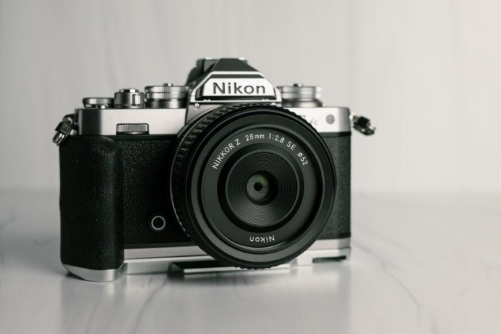 尼康Z 28mm f/2.8 SE镜头在尼康Z相机用户中被亲切地称为“松饼镜头”(因体积小巧如松饼而得名)。这款广角定焦镜头(图中为带银色饰环的特别版SE型号,另有设计更现代的普通版,价格更低)虽是全画幅镜头,但在尼康DX画幅相机上能发挥最佳性能。