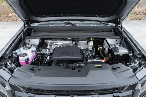 动力部分,捷途旅行者C-DM搭载的是一台型号为SQRH4J15的1.5T涡轮增压发动机+前/后置三电机的插电式混合动力,发动机最大功率115kW(156Ps),最大扭矩220N·m,电动机总功率340kW(462Ps),电动机总扭矩700N·m,匹配的是3挡DHT变速箱,电池搭载的是一块宁德时代的磷酸铁锂电池,容量为43.24kWh,CLTC工况下纯电续航里程为211km,支持快充0.62小时和慢充6小时,百公里耗电量23.5kWh/100km,采用的是前置四驱的驱动方式,最高车速200km/h,最低荷电状态燃料消耗量6.78L/100km,前悬挂形式为麦弗逊式独立悬挂,后悬挂形式为多连杆式独立悬,并带有后桥限滑差速锁、坦克掉头、蠕行模式以及涉水感应系统等功能。